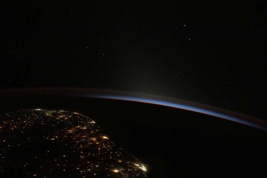 This photo was taken aboard the ISS when the station was floating above the Brazilian coast. What a treat, seeing a sunrise in space!